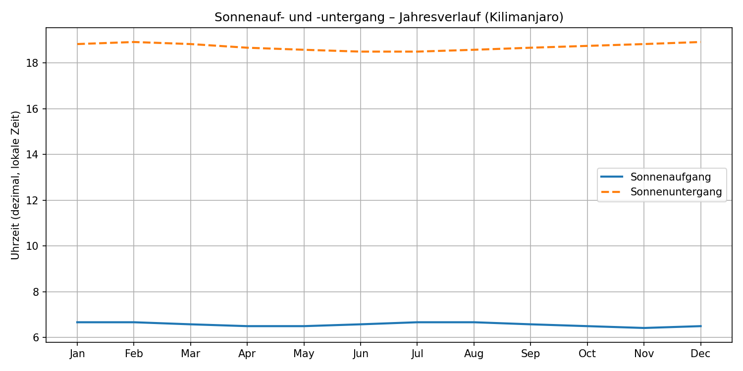 Für die Planung bedeutet das: Jahreszeiten beeinflussen nicht das Tageslicht, sondern vor allem Klima und Bedingungen. Die Zeitfenster am Berg werden durch Akklimatisation, Route und Gipfeltag bestimmt – nicht durch den Monat.